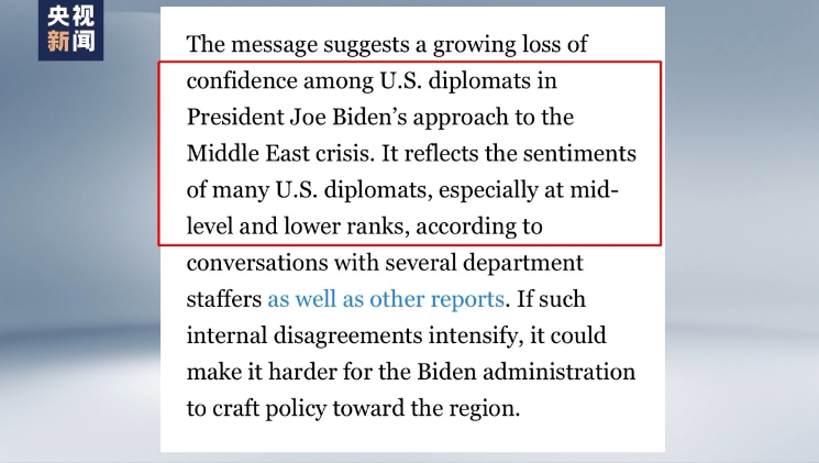 《政治报》评论称,这份文件表明,美国官员内部在对待巴以冲突的立场上存在分歧,部分官员对政府制定的政策越来越没有信心。如果这种内部分歧持续加剧,可能会使美国政府更难制定针对该地区的政策。