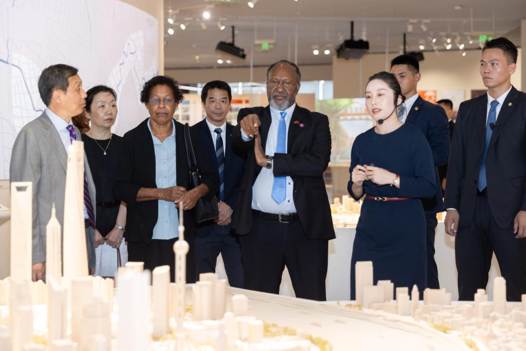 7月9日,瓦努阿图共和国总理夏洛特·萨尔维在上海城市规划展示馆参观。新华社记者 王翔 摄
