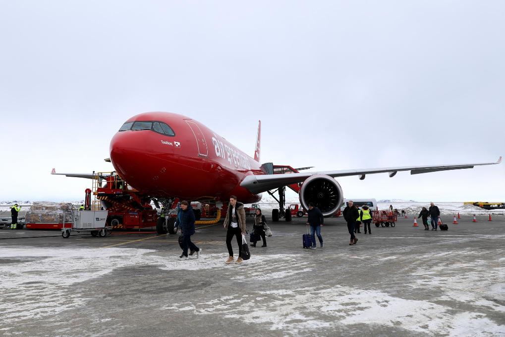 2025年3月18日,人们乘坐飞机抵达丹麦自治领地格陵兰岛首府努克。新华社记者赵丁喆摄